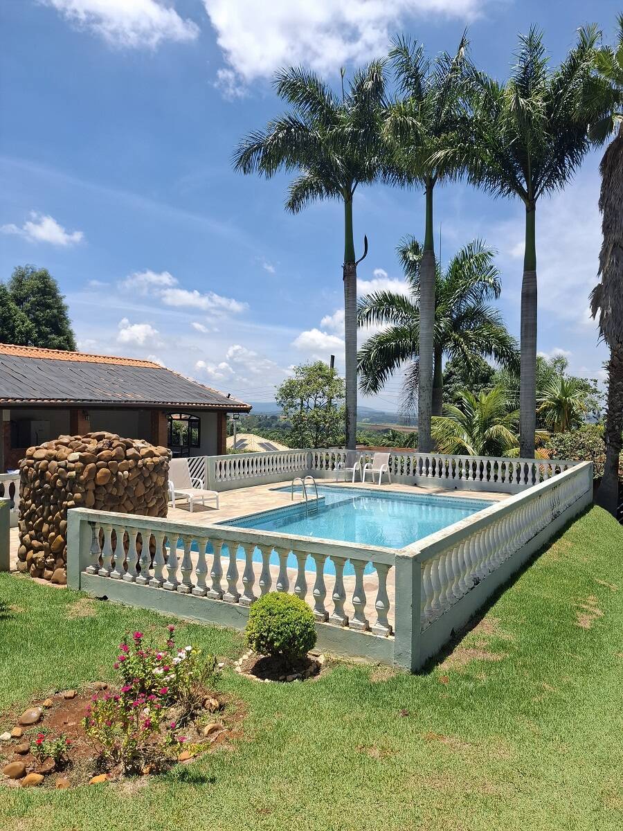 Lazer com lindo lago para pesca com deck, campo de futebol, quadra de tênis, quadra esportiva, piscina, playground, quiosque com churrasqueira, muita área verde com diversas árvores frutíferas, praça do Por do Sol com uma espetacular vista da região.