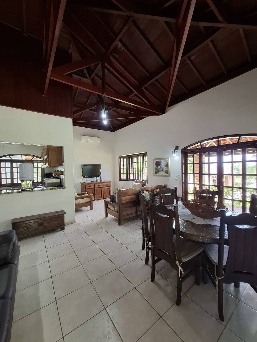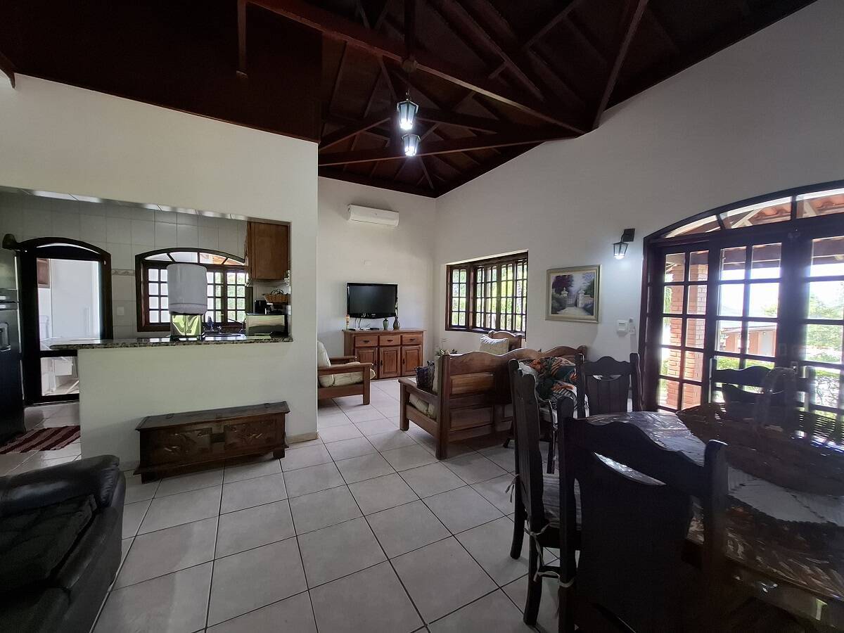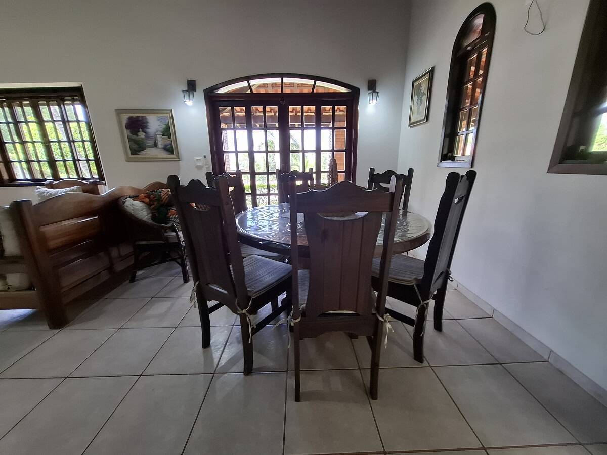 Charmosa casa em estilo rústico, avarandada, com 3 dormitórios, sendo 1 suíte, salas de estar e jantar integradas com ar-condicionado, cozinha americana, banheiro social e externo, além de área de serviço.